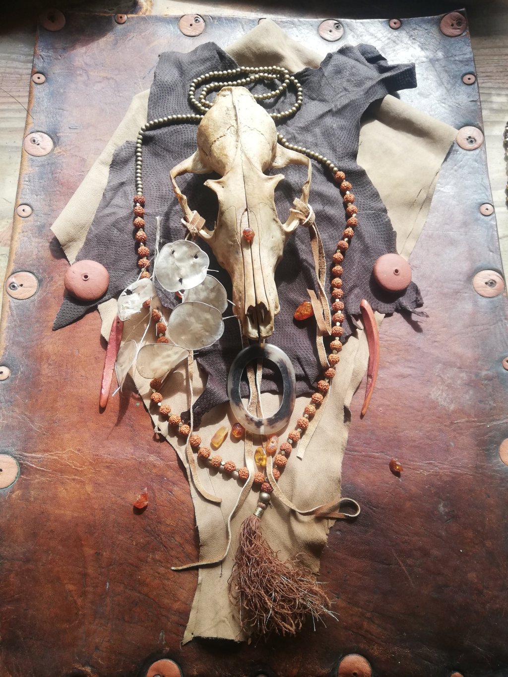 Jade makes Jewellery (among other things). However, I never feel that accurately describes her pieces. They are magical talismans, carefully put together in her gorgeous studio. Imbued with particular attributes fit for their purpose; symbolized in bones, beads, pressings from places of spiritual significance, shells etc. She makes commission pieces which can be for a particular spirit, animal guide, experience, deity, story, journey… honestly, the list goes on and on. She also creates incredibly unique pieces whispered to her from her muse. It really is so hard to describe in a few words.