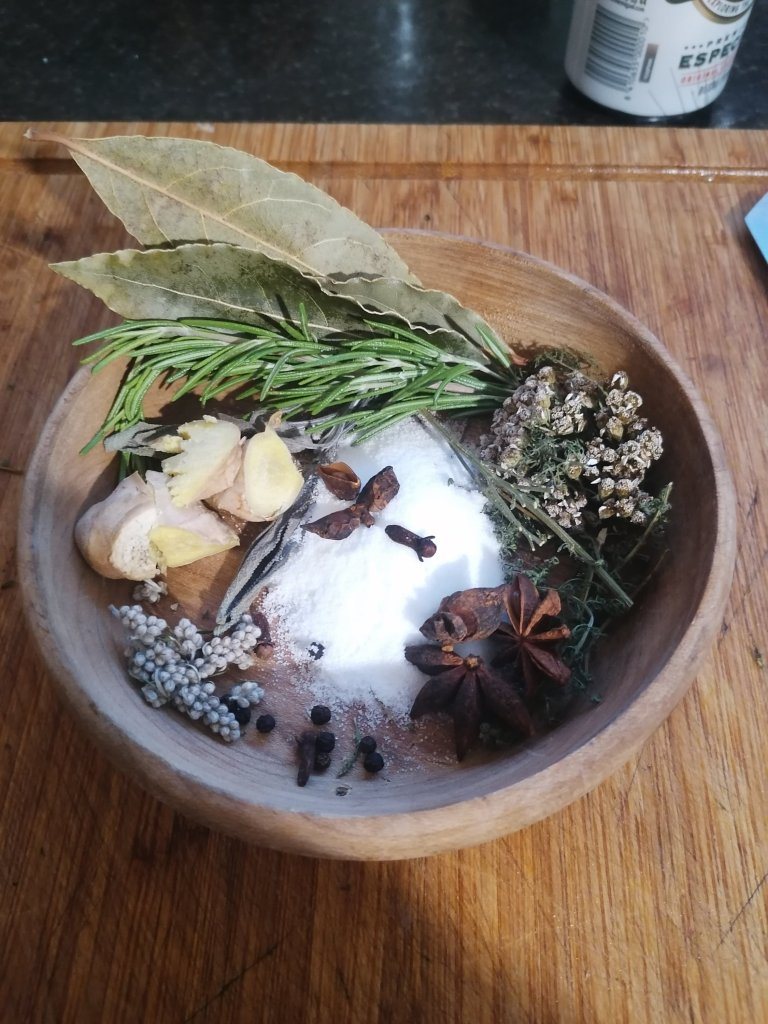 • Instead of putting the herbs etc. in a bowl, I brew them up in a pot adding intention, strain into the biggest jug I can find allow it to cool, this will be a rinse at the end of your shower.