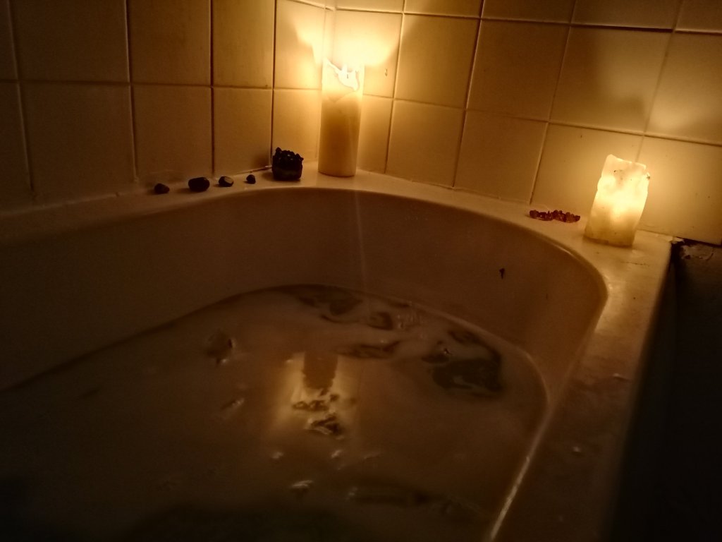 • Set up like you would with a bath put your crystals and candles out. Make sure you have everything you will need before casting a circle, then hop in