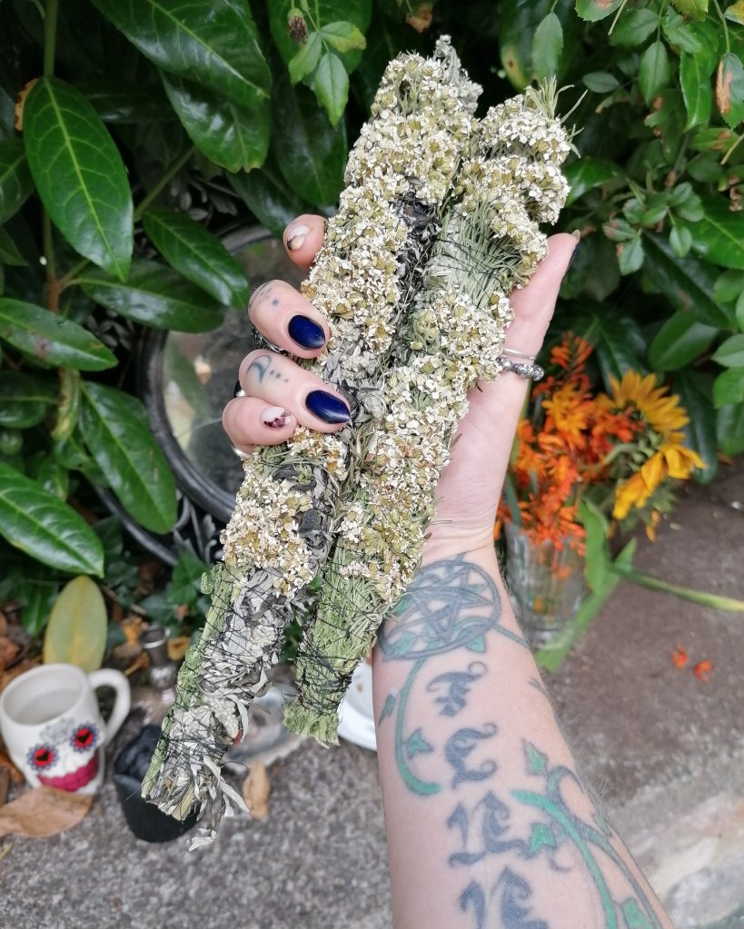 It can also be burnt as an incense which is really good for smoke cleanses and cense sticks. I mentioned before that Mugwort was the UK’s answer to sage. It has all the magical properties of sage plus a little extra oomph in terms of protection and ritual work. It is more ethical in that sense too, especially in replacement of white sage; which, I have mentioned in other posts, is sacred to Native Americans and as such should not be used let alone sold. (that is rant for another day). Personally I feel more connected to Mugwort anyway.