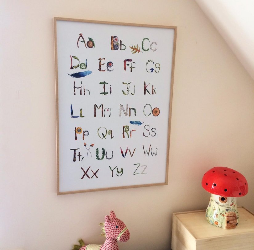 The first Pieces I saw of Dawn’s as I mentioned, were in a play café These pieces were designed (I assume) to appeal to children and parents. The first was an illustrated ABC picture and it BLEW MY MIND! This is amazing! This is how I see the natural world! This is how I want the children that I am connected to, to see their world! And someone has seen it and painted it!